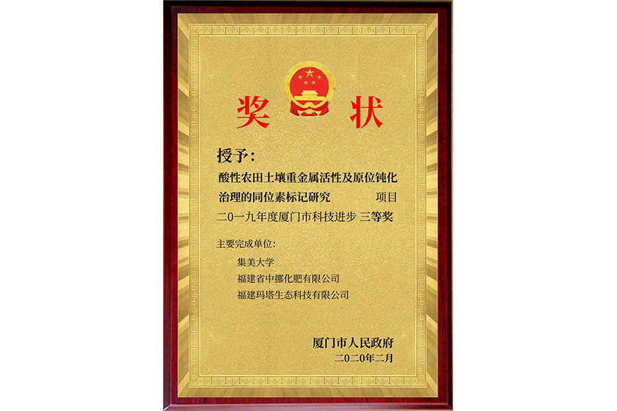 廈門市科技進步“三等獎”